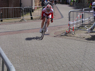 Vlak en slecht wegdek, dat was het parkoers. Via een lus vanuit Knokke richting Bredene voor een aantal plaatselijke ronden. Al vrij snel had Christel pech, vervolgens reed Joukje in de eerste groep lek en tenslotte had Iris pech.